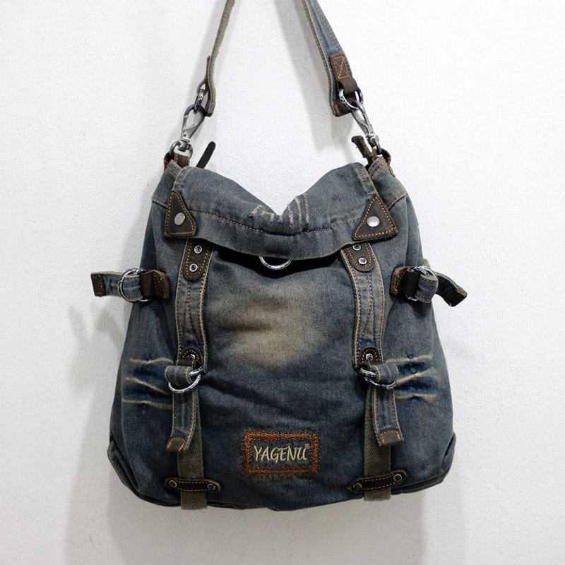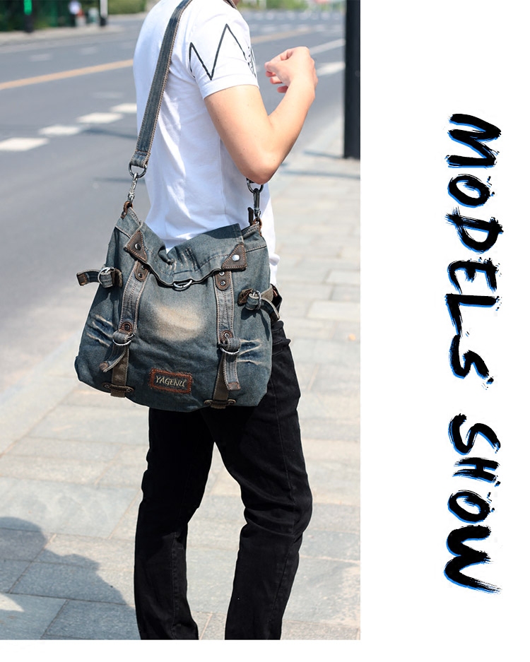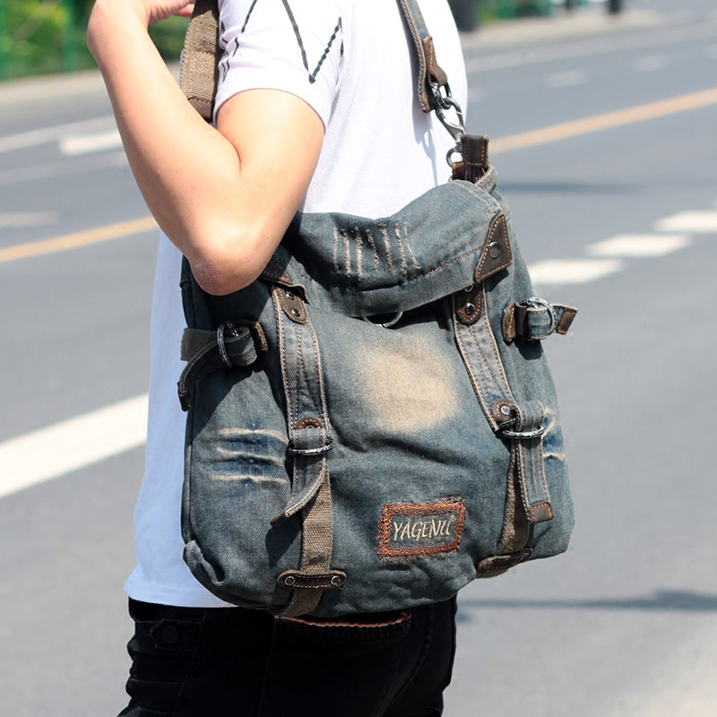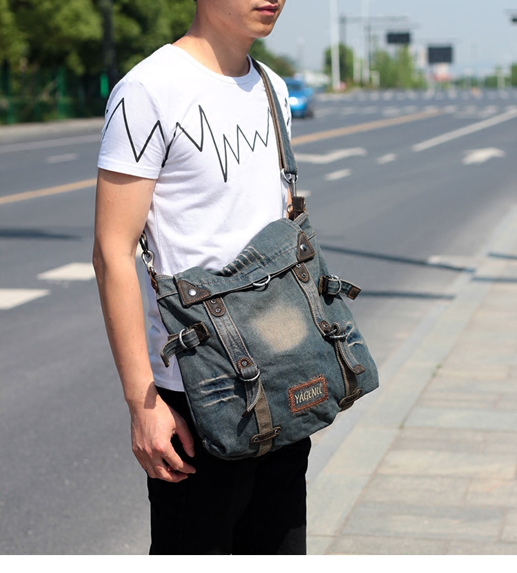 New denim bag men's casual cross-body bag vintage simple canvas commuter bag retro one-shoulder backpack women's bag tide