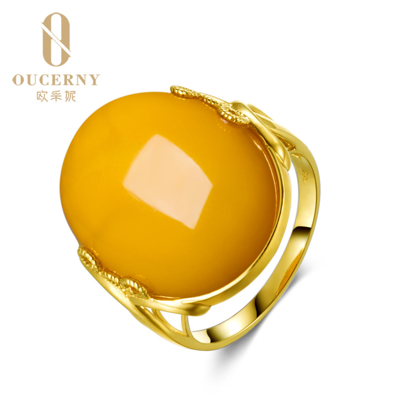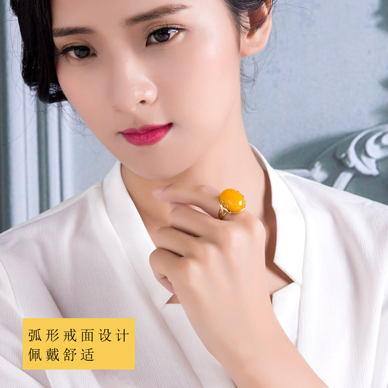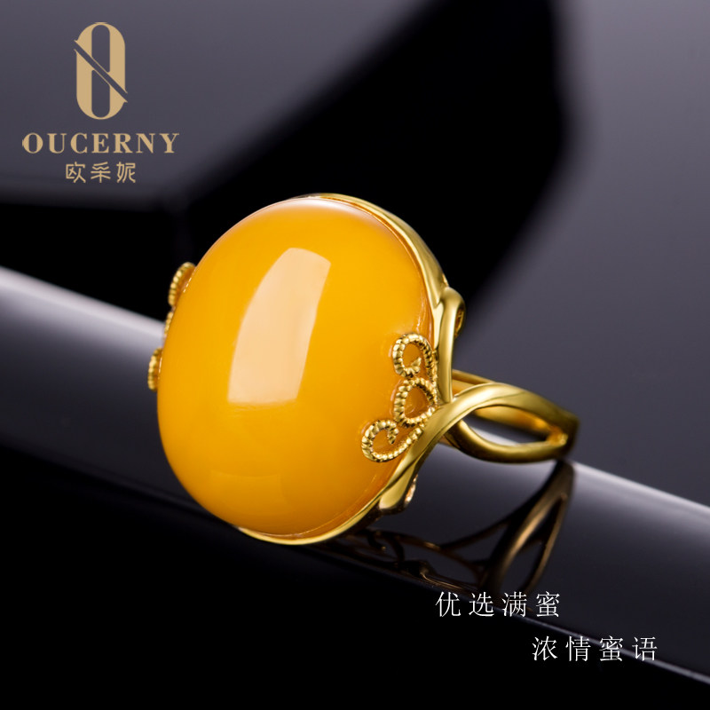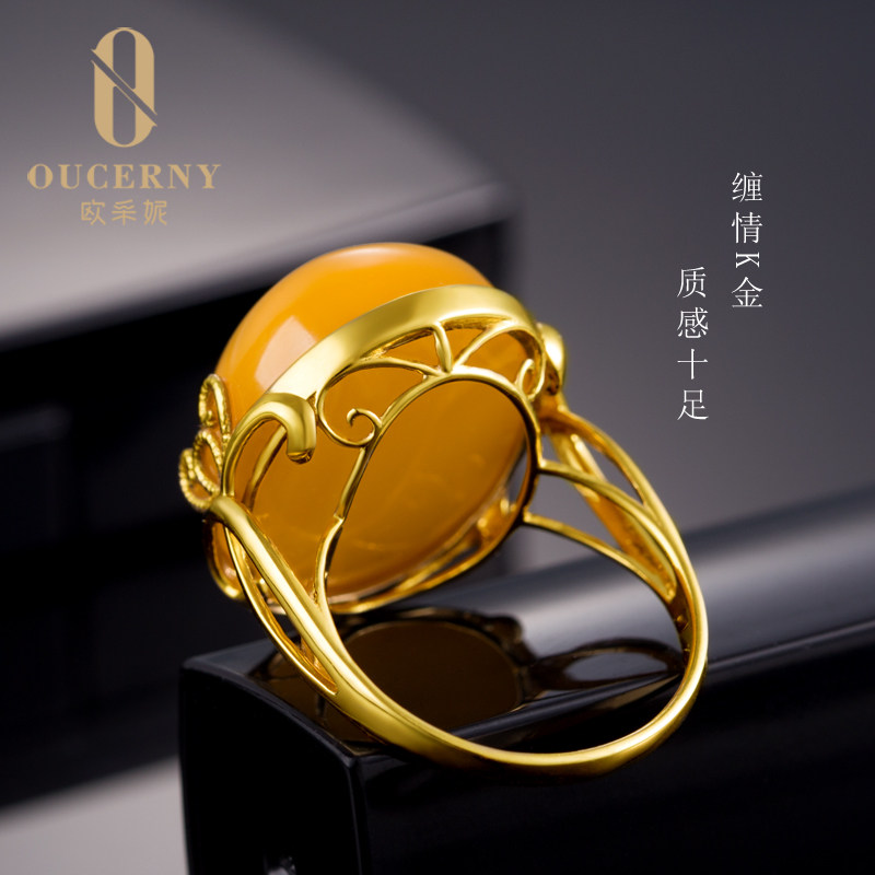 Eugenie Beeswax ring "Love filled"18k gold inlaid with natural amber chanterelle yellow honey female model