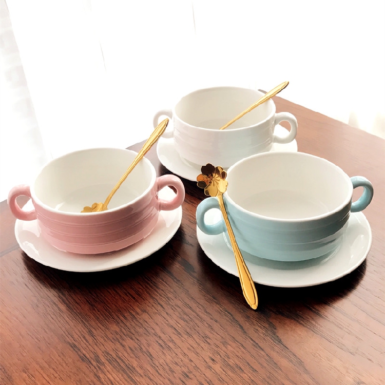 Creative dessert cup Salad bowl Stew soup cup Baking mold Steamed egg bowl Binaural ceramic baking bowl Chinese breakfast porridge bowl