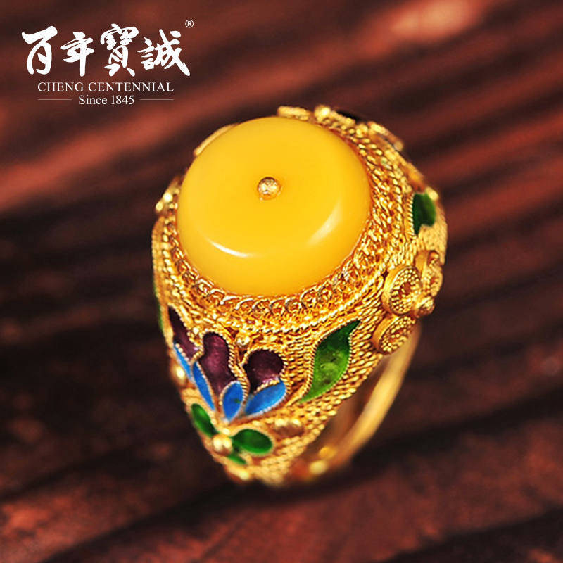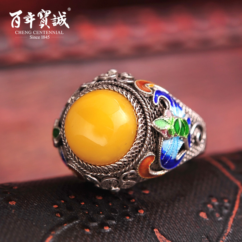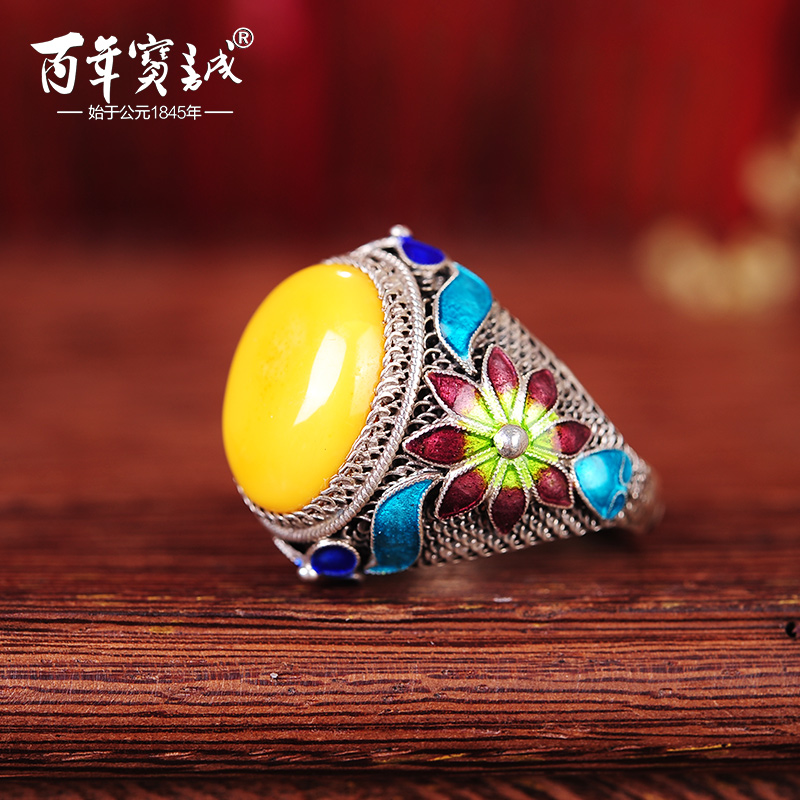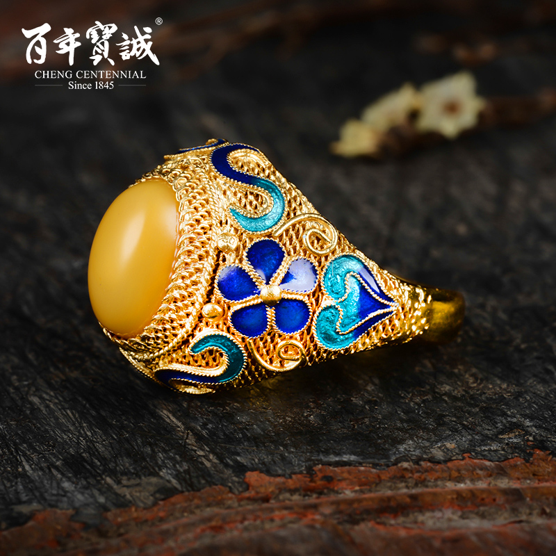 Centuries-old Treasure Wax Chicken Oil Yellow Pinch High Temperature Enamel Silver Ring Woman 925 Jingtai Blue Flower Artisanal Ring