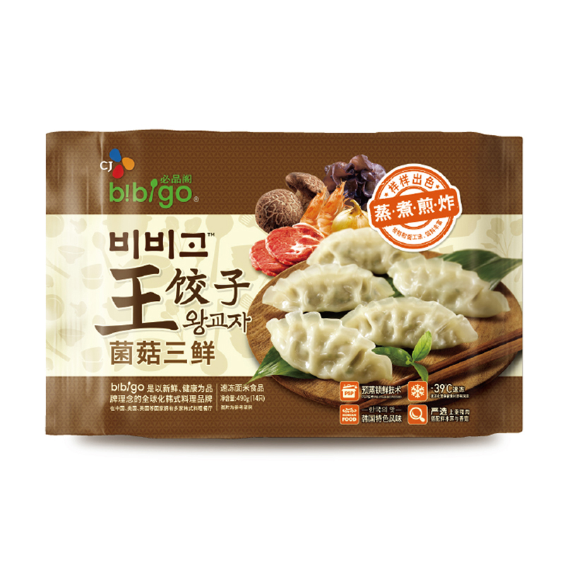 Bibigo Korean bibigo mushroom three fresh meat Wang Shui dumplings 490g bag 14 bags full of 4 bags