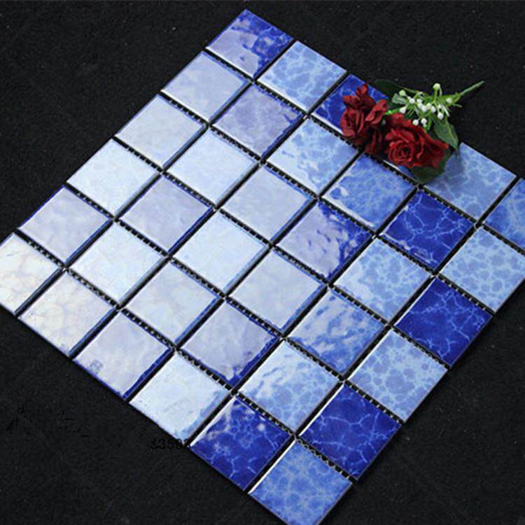 Blue glaze 300 x 300 mosaic blue pool decorated round wall crystallized glazed ceramic cube net stick