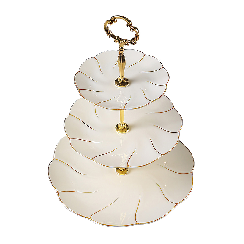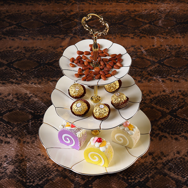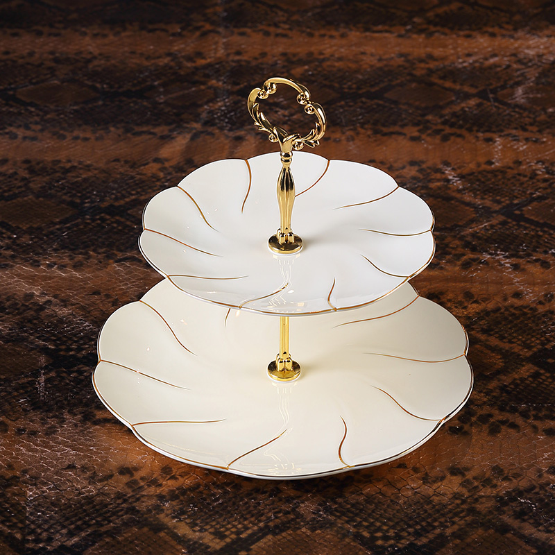 Wave double layer of fruit pan-white porcelain with three layers of fruit tray-white porcelain Classical Rose Double disc Classical Rose Three Layers Disc Point Gold Double Disc Point gold three-layer disc Mioise Three layers of disc-white rhododendron 3-layer disc