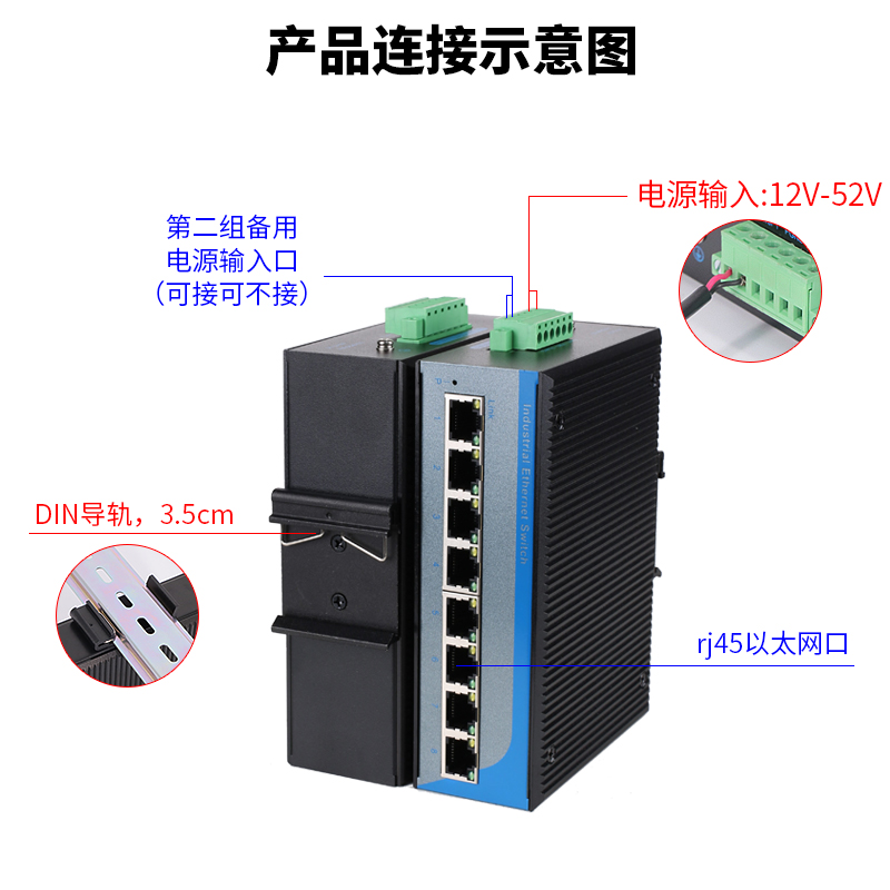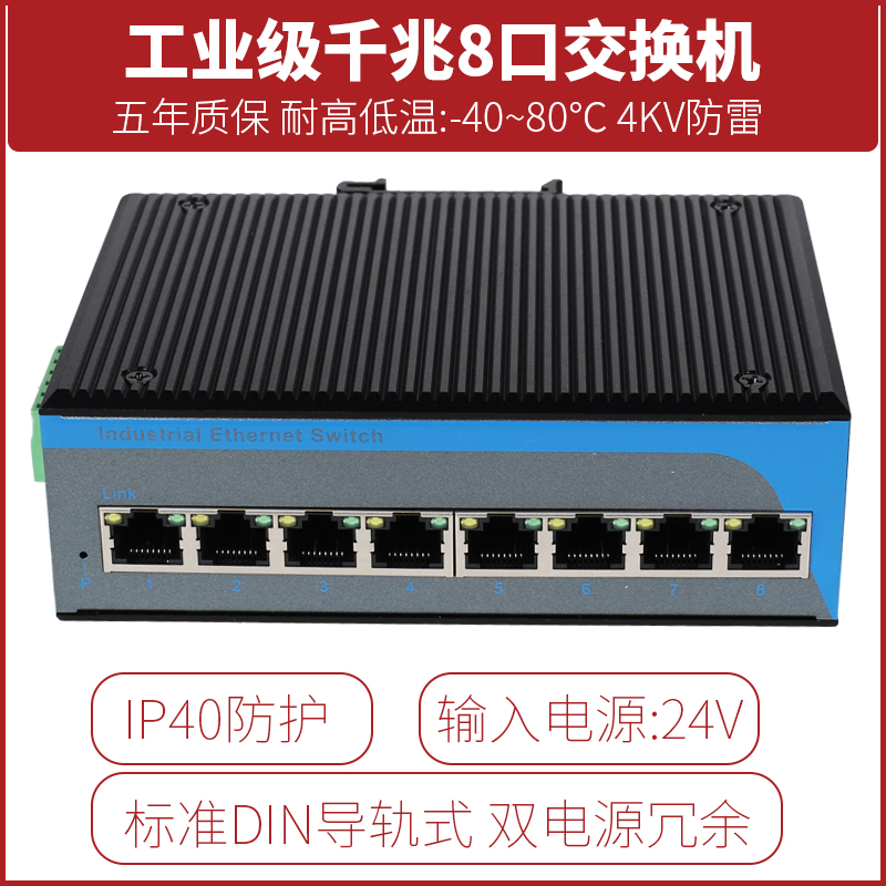aopre aluminum alloy 8-port industrial-grade Gigabit lightning protection monitoring switch high-quality rail-type PLC with wide temperature resistance T608G