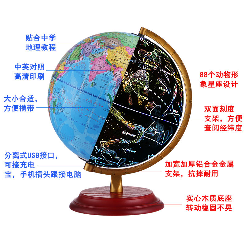Where Constellation Globe 25cm HD Students Use LED Tables Light Shine Children Teaching Pendulum Gift 2020