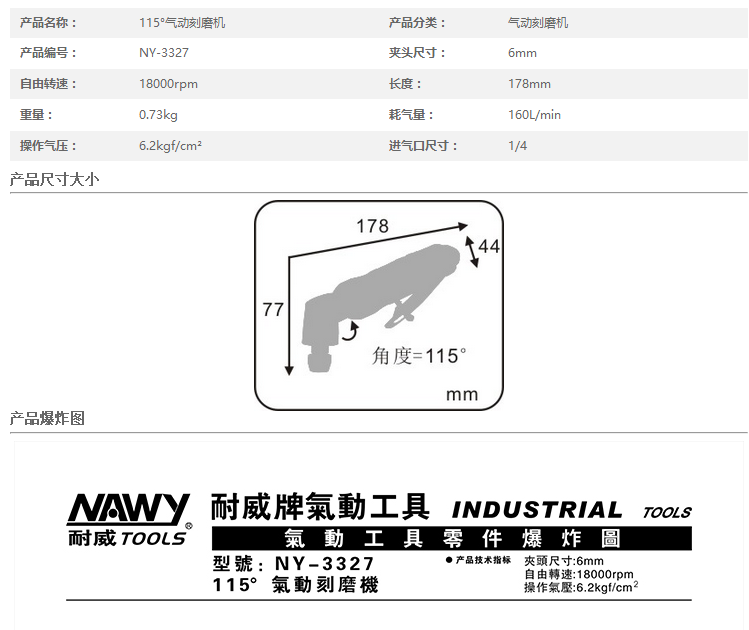 Weve pneumatic elbow engraving machine NY3327 Pneumatic grinding head machine 115-degree elbow wind mill gas grinding pen