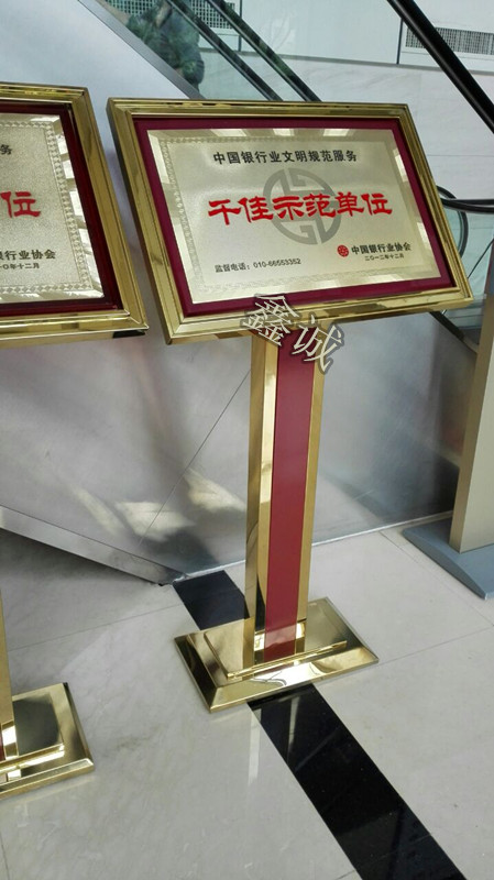 Titanium alloy bank advertising model medal water card indicator Stainless steel vertical card display stand Honorary bronze medal publicity plate