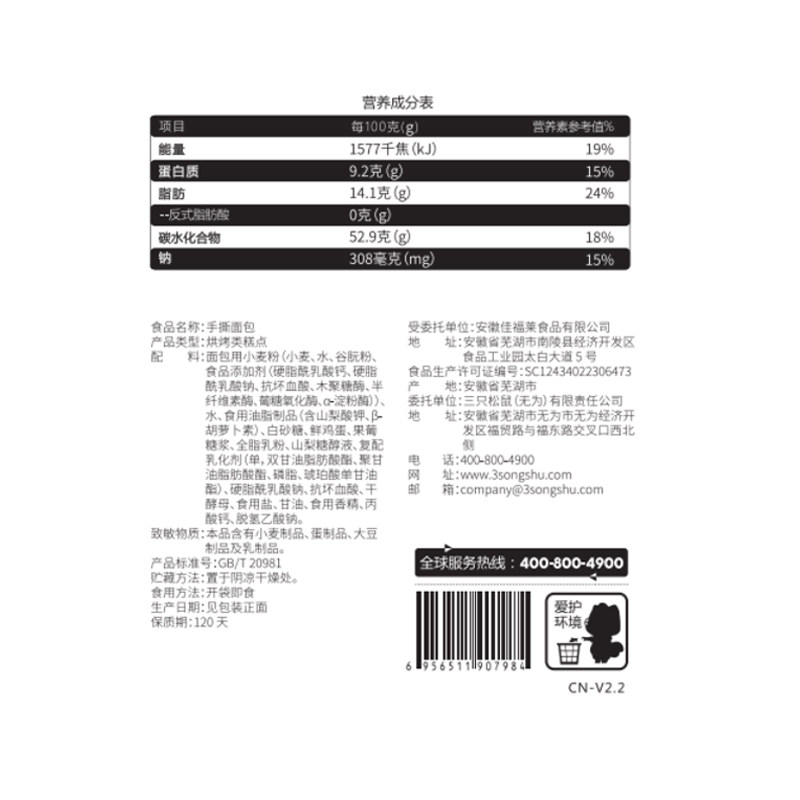 (Three Squirrels_hand-torn bread 1kg) Net red snacks snack snack food whole box cake whole wheat breakfast