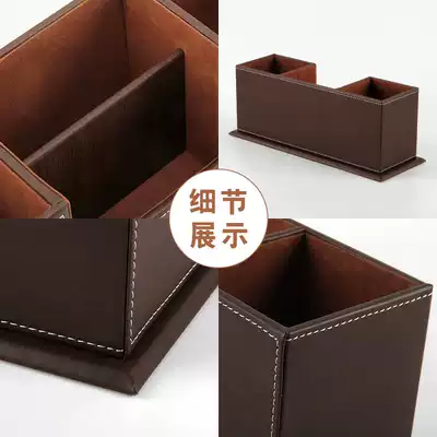 Leather stationery desktop storage box office pen holder Wood multifunctional creative fashion Korean cute mobile phone holder