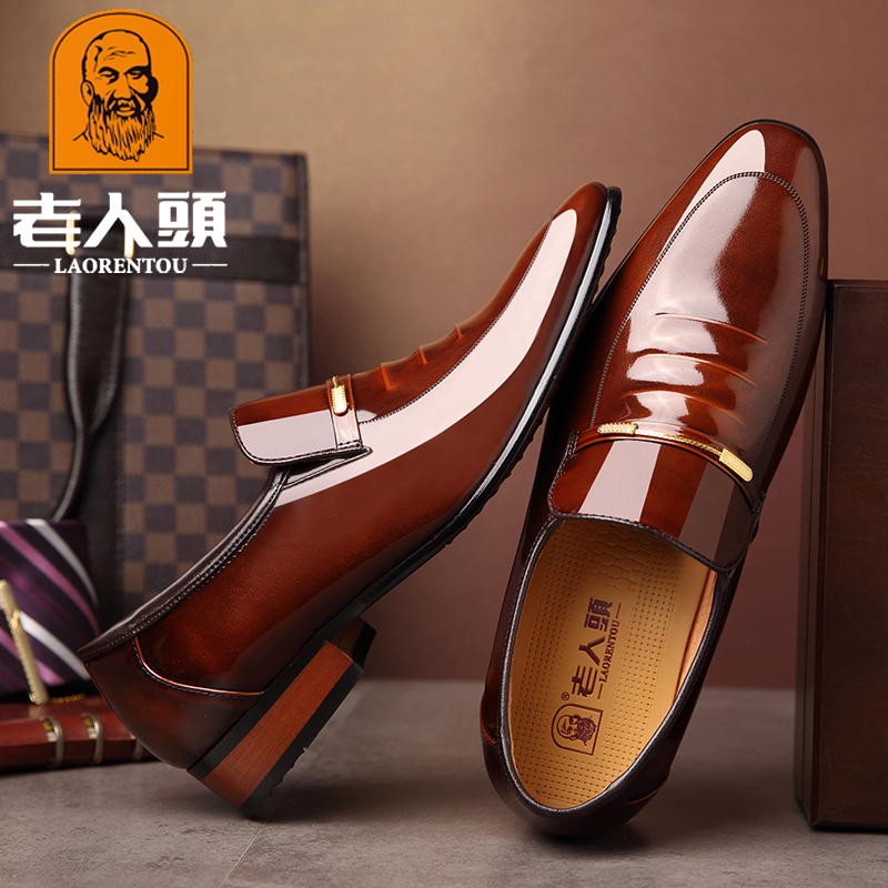 Old man's head men's shoes pointed toe British business formal leather shoes men's leather new breathable shoes men's wedding shoes
