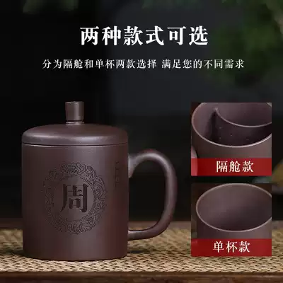 Yixing purple sand cup teacup handmade men and women large-capacity compartment filter with lid water cup custom lettering gift