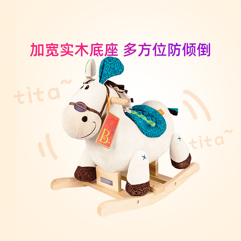 Bele Btoys rocking horse horse Trojan anti-fall solid wood plush children's toys baby baby birthday gift