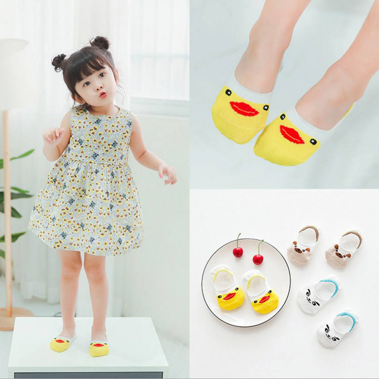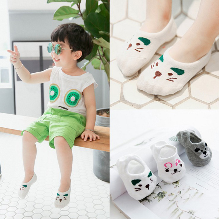 3 pairs of children's socks Summer cotton socks Solid color mesh invisible boat socks Cartoon animal shallow mouth socks 1-10 years old