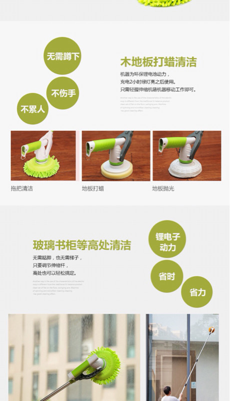 Wireless Electric Tile Towed Place Swivel Mop Floor Charging Waxing Machine Home Cleaning Brush Inner White Polished Sleeve