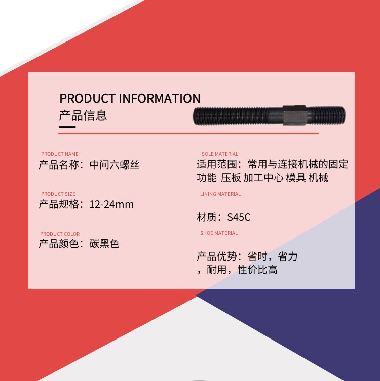 Middle hexagon double tooth bolt screw Mold pressure board screw M12 14 16 18 20 22 24