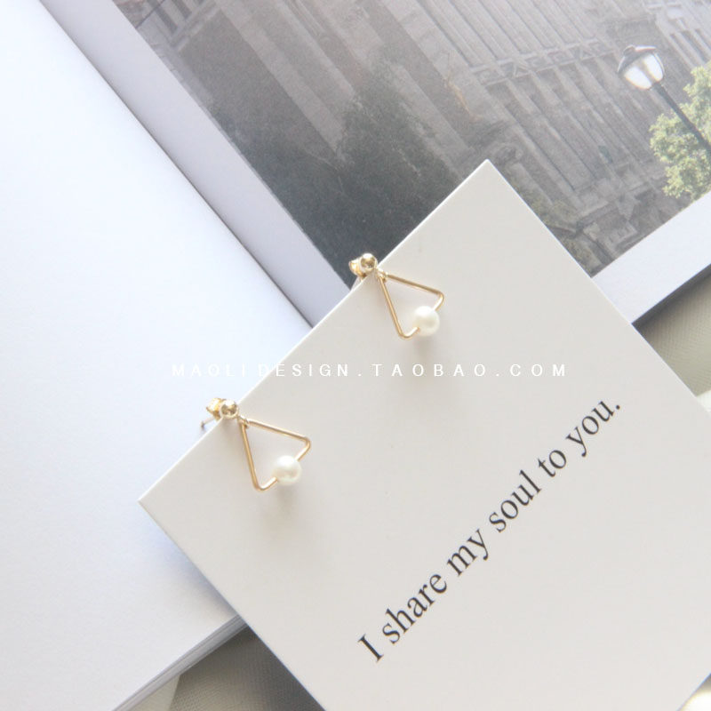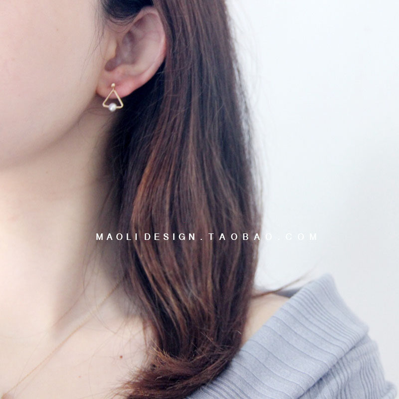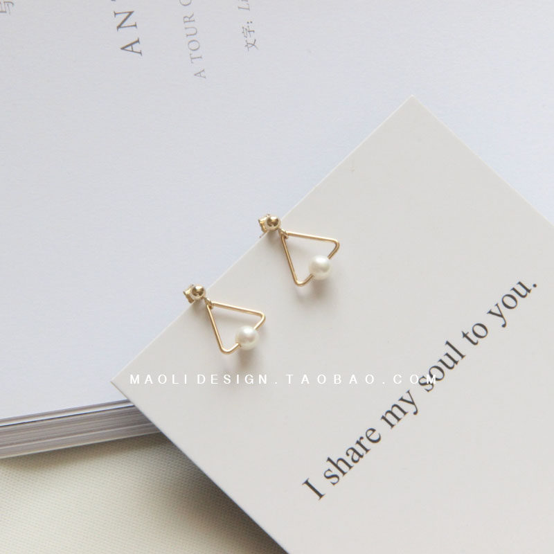 MAOLI Natural Freshwater Pearl Earrings 14k Bag Gold Injection Gold Geometric Triangular Earpin Earrings