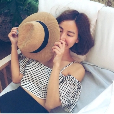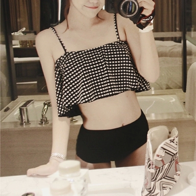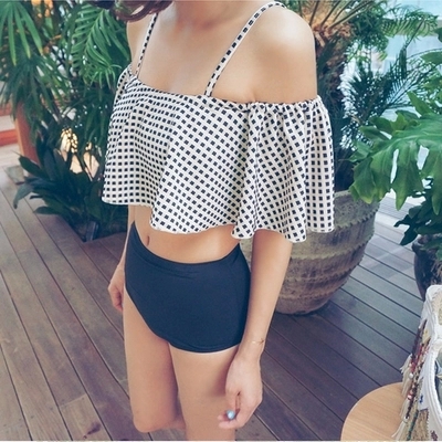 New sweet and white color black and white color lined with shoulder lotus leaf side high waist bikini two-style conservative spa swimsuit