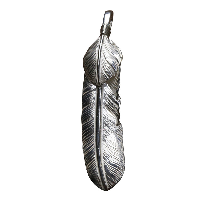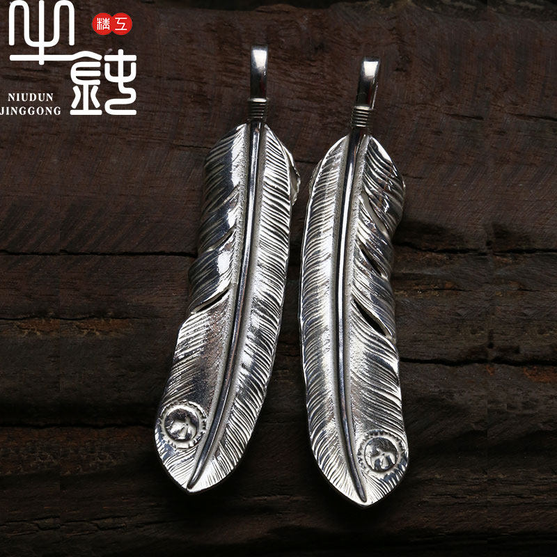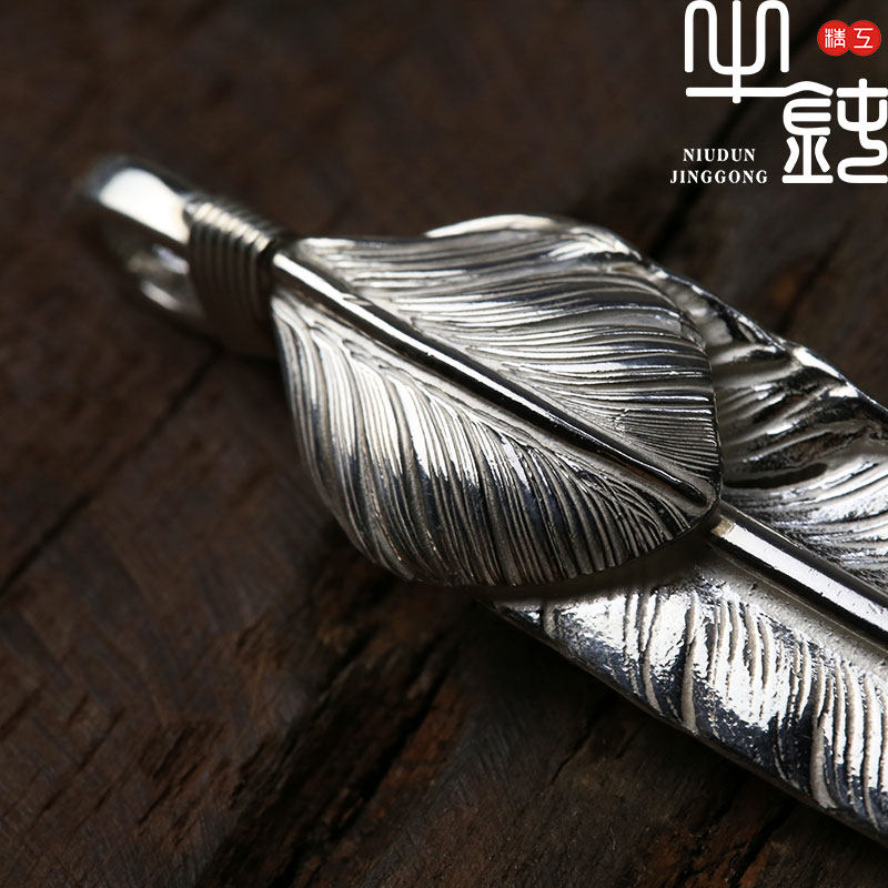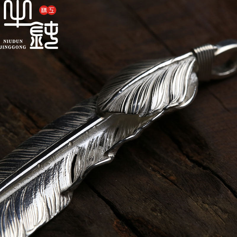 Bull blunt Seiko Takaqiao silver feather necklace pendant 925 pure silver original inscription handicraft couples and women
