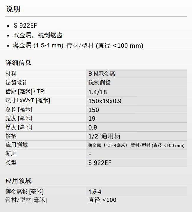Bosch sabre saw blade S 922EF reciprocating saw blade 150mm for thin metal 1 5 ~ 4mm profiles
