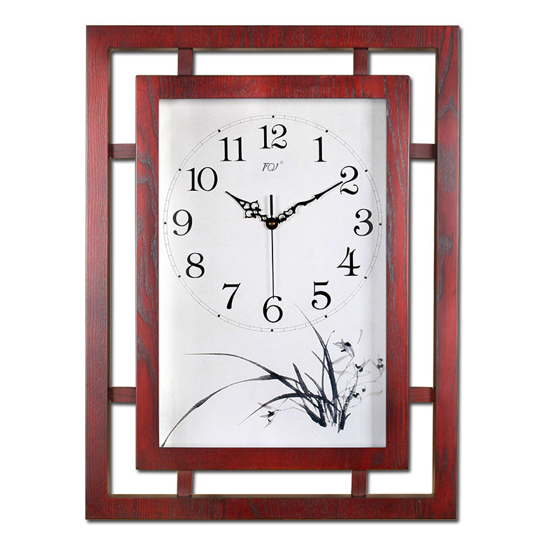 TQJ big number new Chinese living room mute wood wall-mounted bell clock square hung table bedroom water ink quartz clock table
