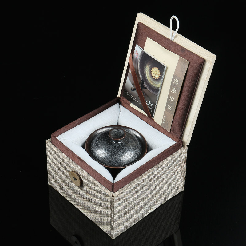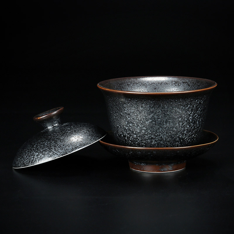 Jiazhan Kiln Li Jiazhan Jianzhan Tianmu Covered Bowl Large Tea Set Tea Cup Ceramic Inlaid Silver Sancai Covered Bowl