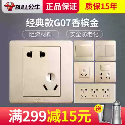Bull switch socket panel household champagne gold switch Wall type 86 concealed belt 5 five holes porous