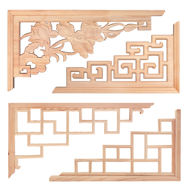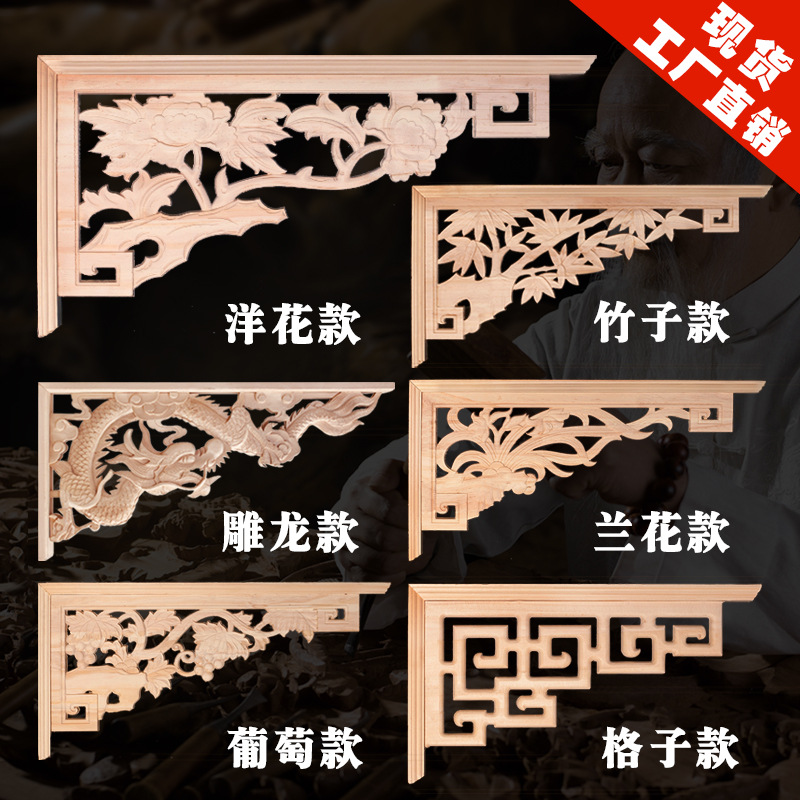 East Yang Wood Carving Corner Flower Solid Wood Flower Lattice Gun Angle Eurostyle Applique Suspended Ceiling Door Lintel Hollowed-out Background Wall Chinese Renovations