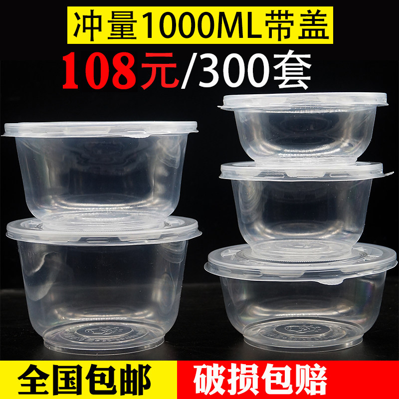 Disposable box round thickened soup bowl fast food delivery fruit packing box plastic bento box with lid fresh box