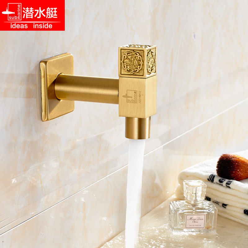 Diving boat mop pool tap European-style earth haute gold full copper fast open tap lengthened tap splash-proof water