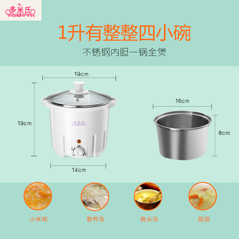 Multi-rice bb baby electric cooker stainless steel liner baby electric saucepan boiling porridge cooking porridge pan Children's side food pan 1L