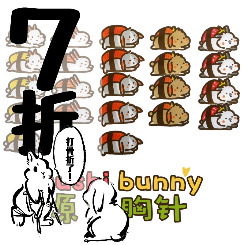 "Brooch" Sushi rabbit original cute cartoon acrylic badge Japanese Harajuku soft sister brooch