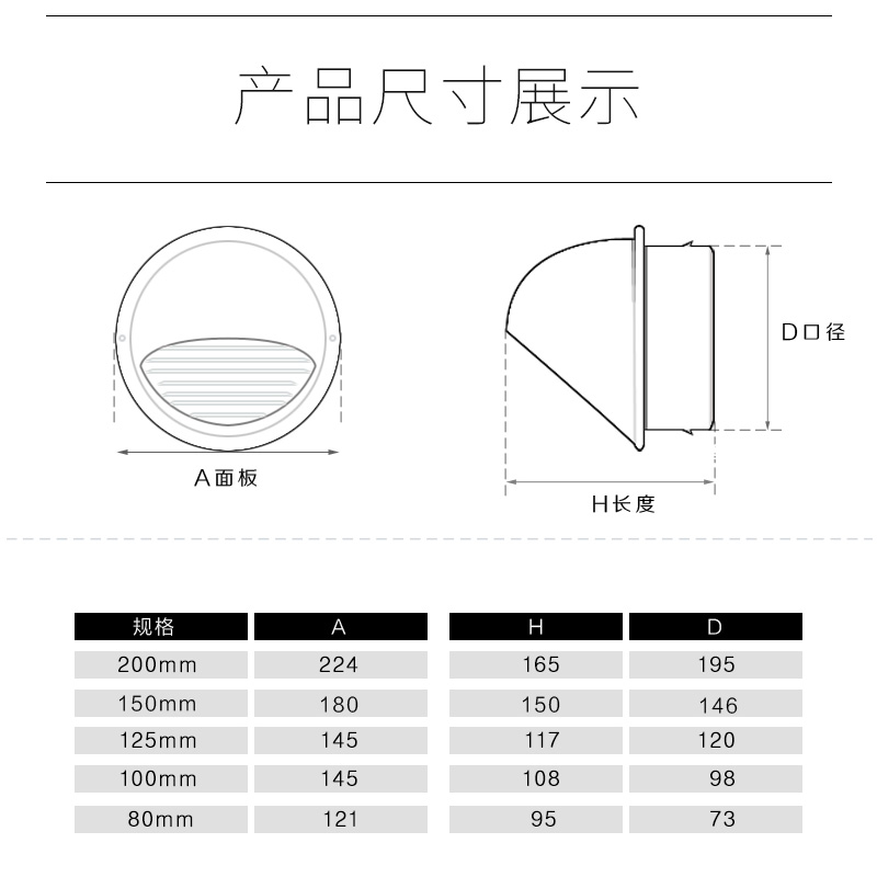 304 stainless steel range hood smoke exhaust outlet hood external wall windproof cap anti-rain hood outer air exhaust fan opening