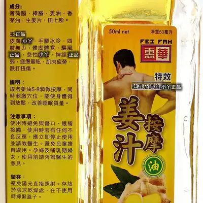 Singapore Huihua ginger Juice Massage Oil dehumidification activates cold and dispels cold hands and feet, neck and lumbar muscle soreness