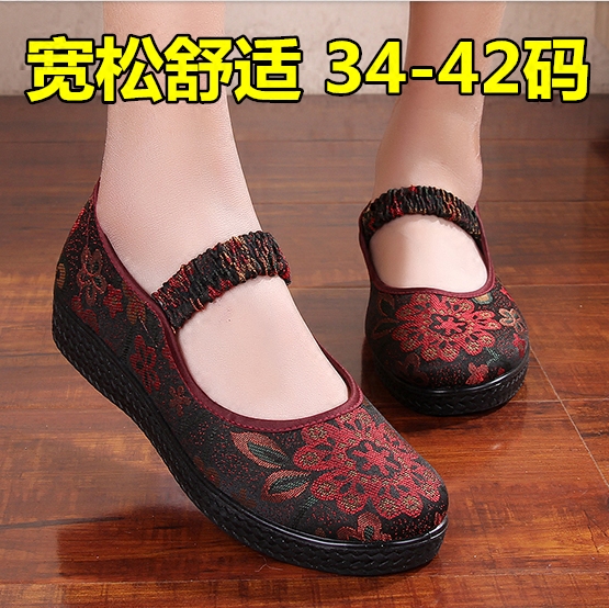 Old Beijing cloth shoes women's shoes middle-aged and elderly mother's shoes loose flat big feet bone fat feet grandma single shoes 41 42 yards