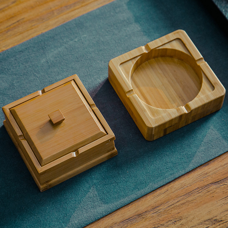 Tea ashtray Cigarette ashtray Bamboo tea box lid with lid cylinder Solid wood large solid wood vintage creative high-grade