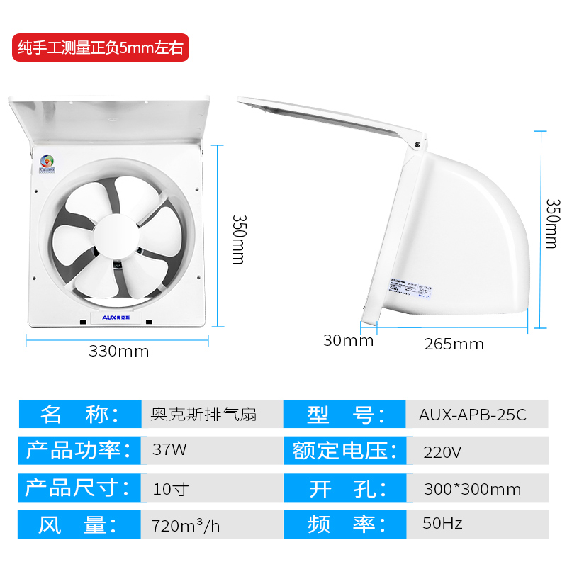Aux exhaust fan 10 inch clamshell wall ventilator Kitchen exhaust fan Waterproof hood strong exhaust fan