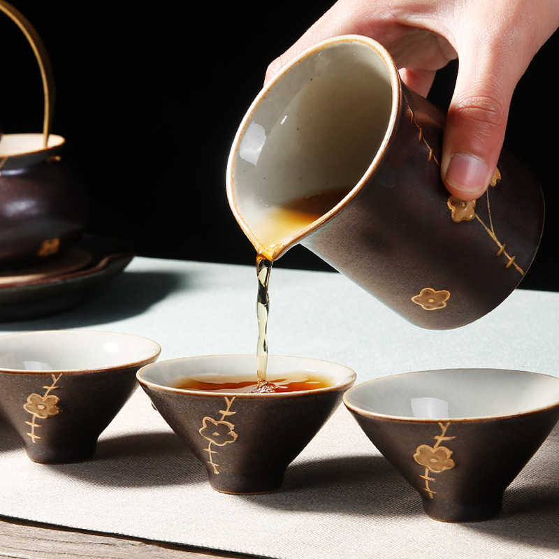 Ning Xiong Pavilion coarse pottery bucket hand-painted gold imitation curium porcelain patch Kung Fu Tea Cup ceramic glaze tea cup