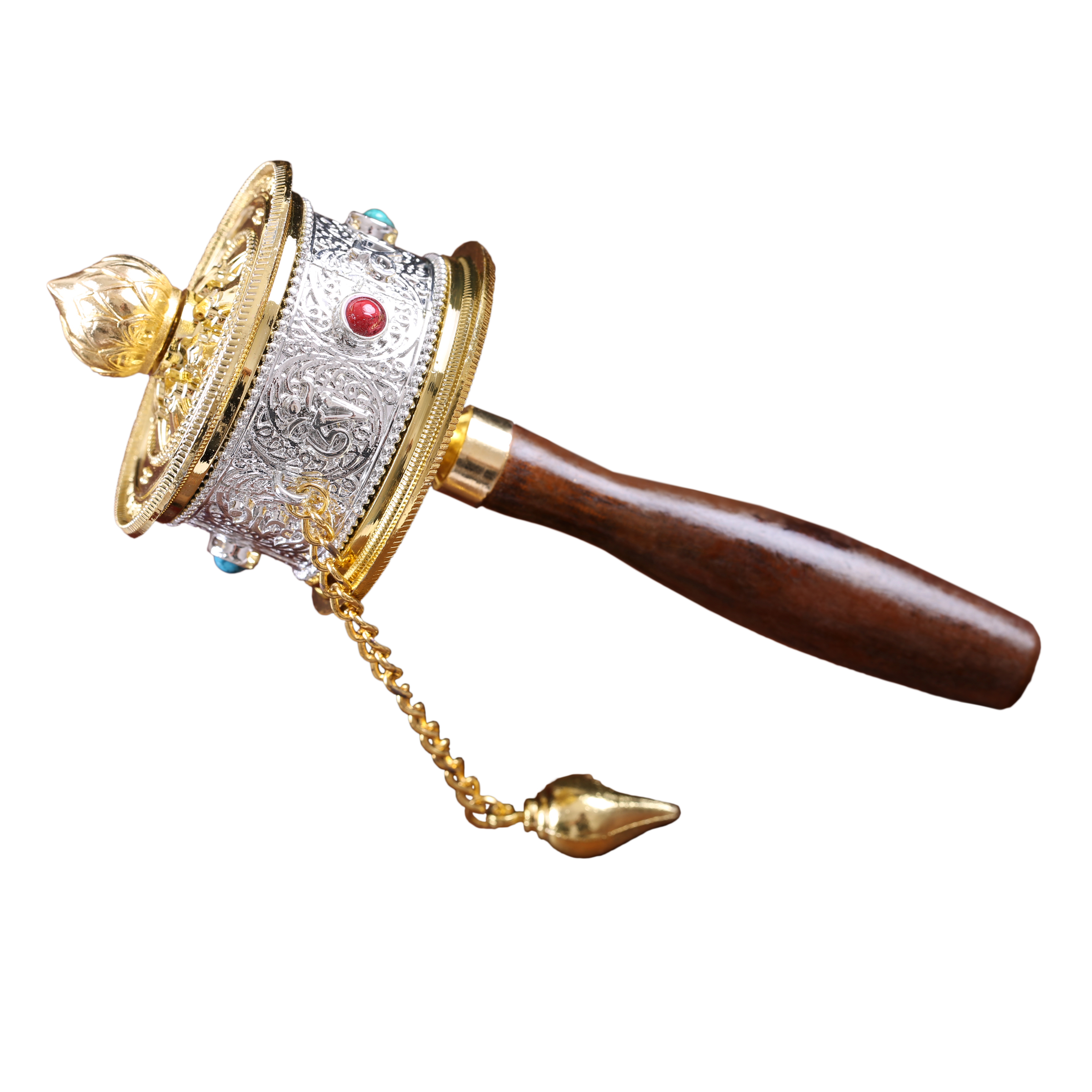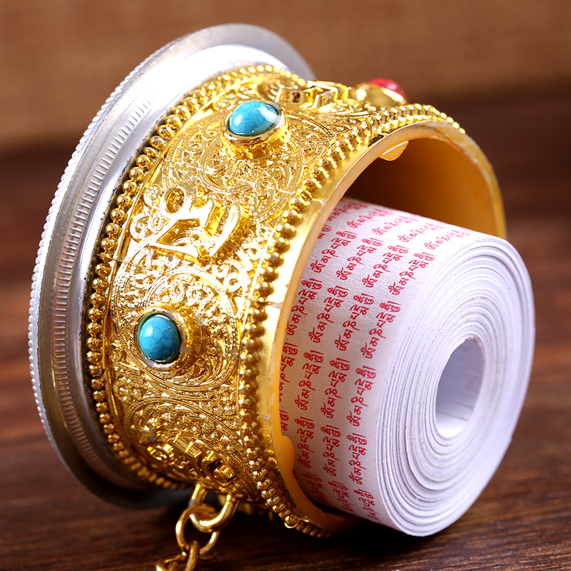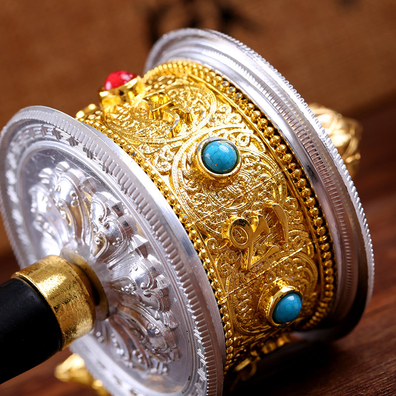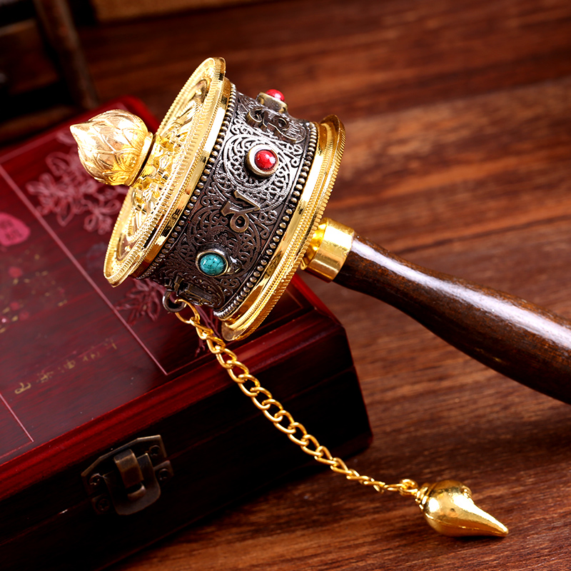 Tibetan boutique red and blue colored beads alloy hand-cranked sutra wheel six-character true sutra sutra wheel Buddhist supplies