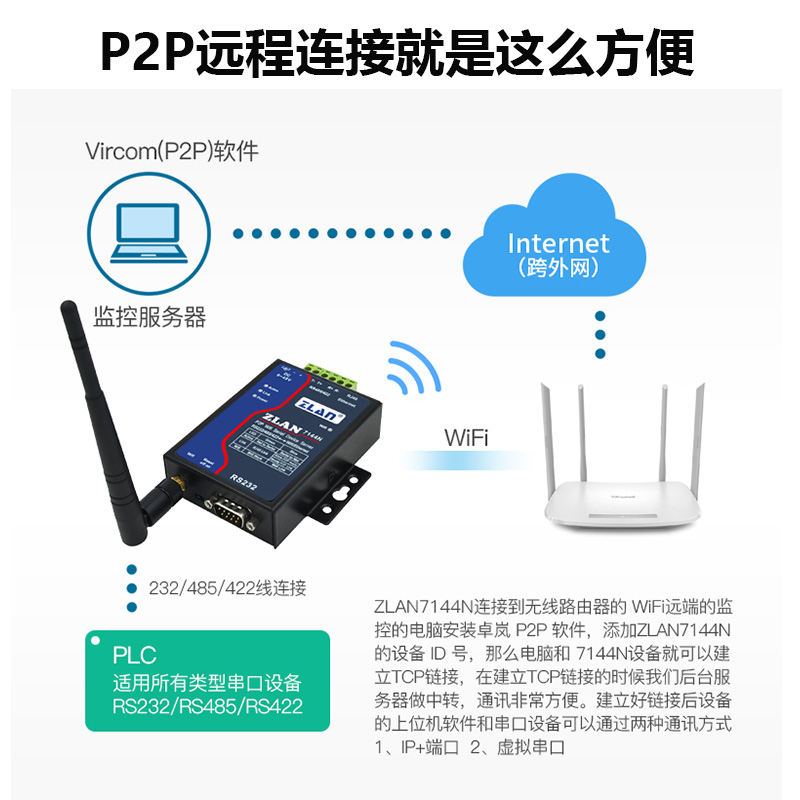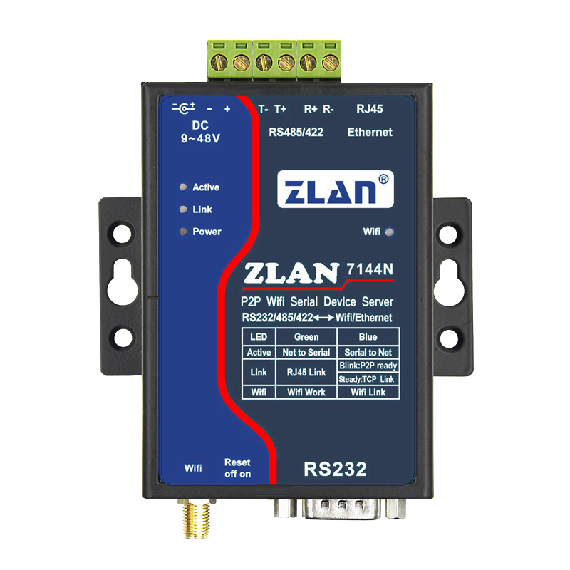 Wireless serial port server Serial port RS232 485 422 to Wifi P2P ZLAN7144N