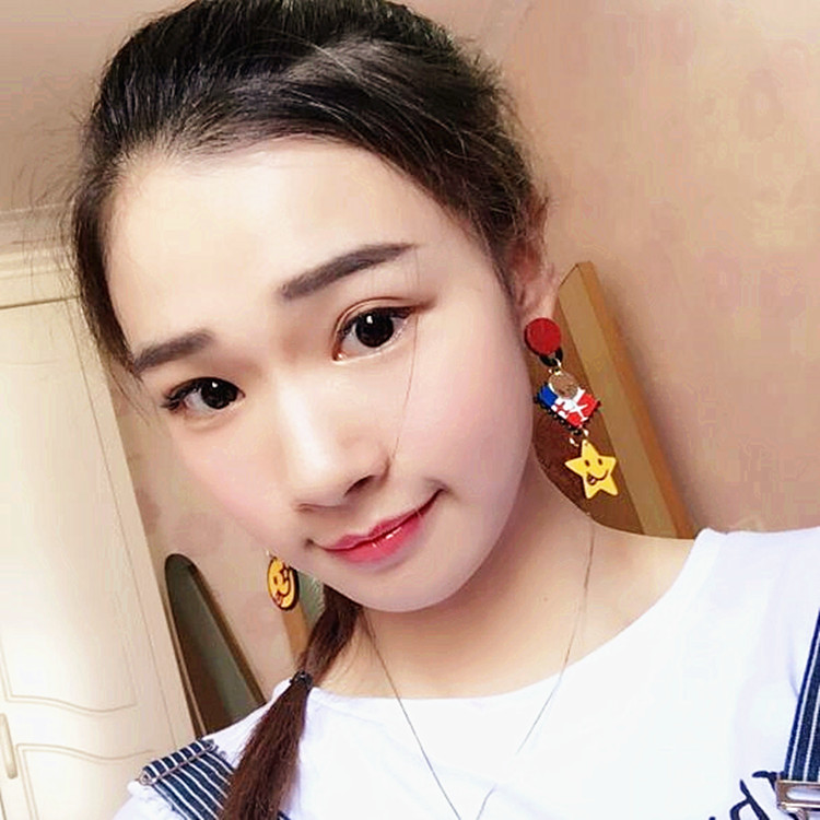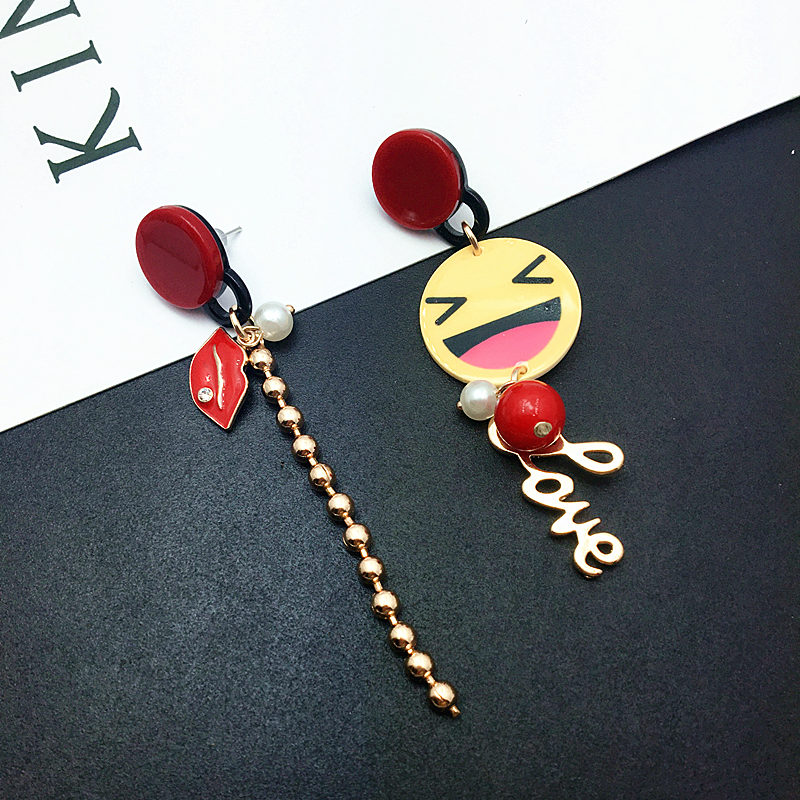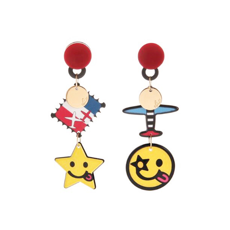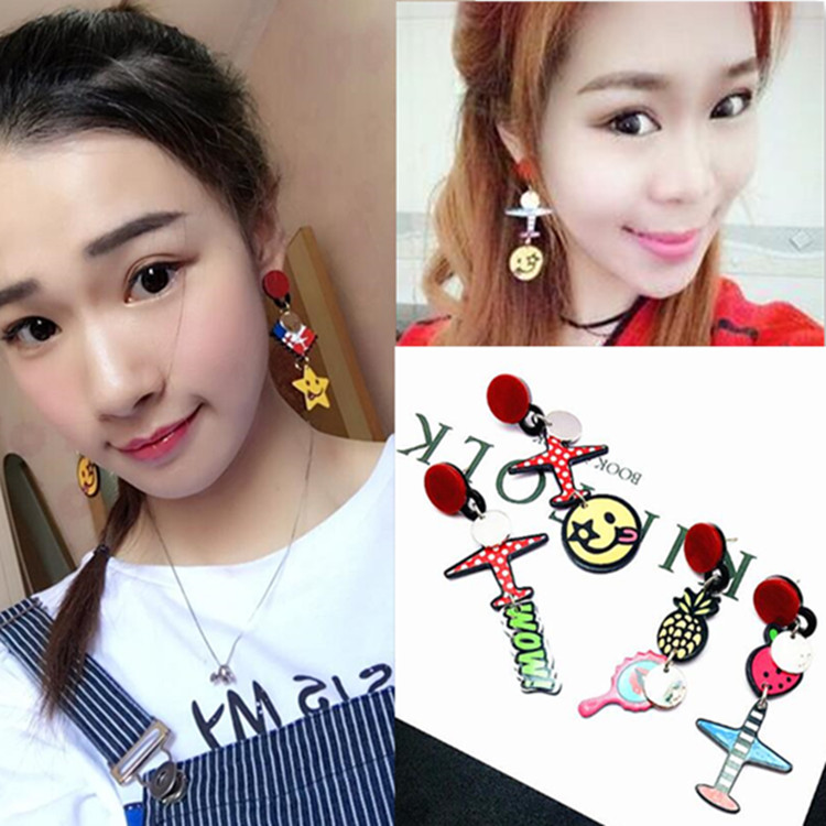 South Korea Dongdaemun new cute cartoon plane smiley face asymmetrical exaggerated earrings women's long drop earrings ear jewelry