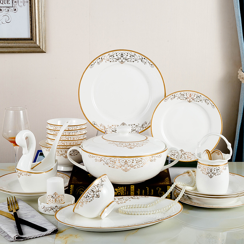 European-style Jingdezhen ceramic tableware set bowls and dishes household bowls and dishes set bone china tableware set gifts Acacia