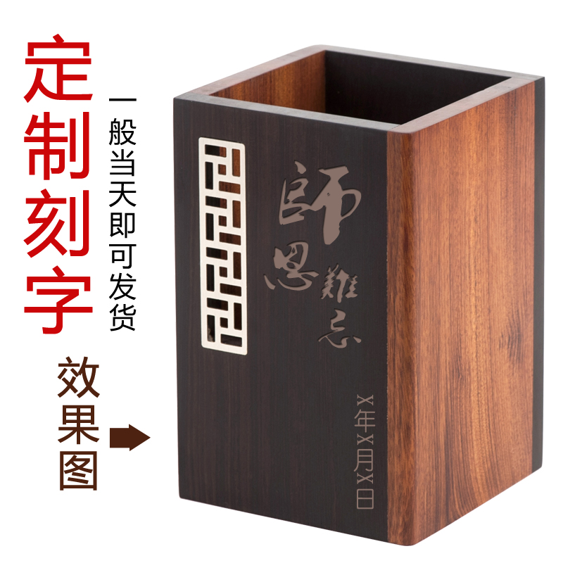 Red Wooden Sour Branches Engraving Pen Holder Lettering Black Sandalwood Solid Wood Quality Creative Handicraft Business Office Chinese High-end Practical China Wind Enterprise School Company Memorial Gift Custom Logo