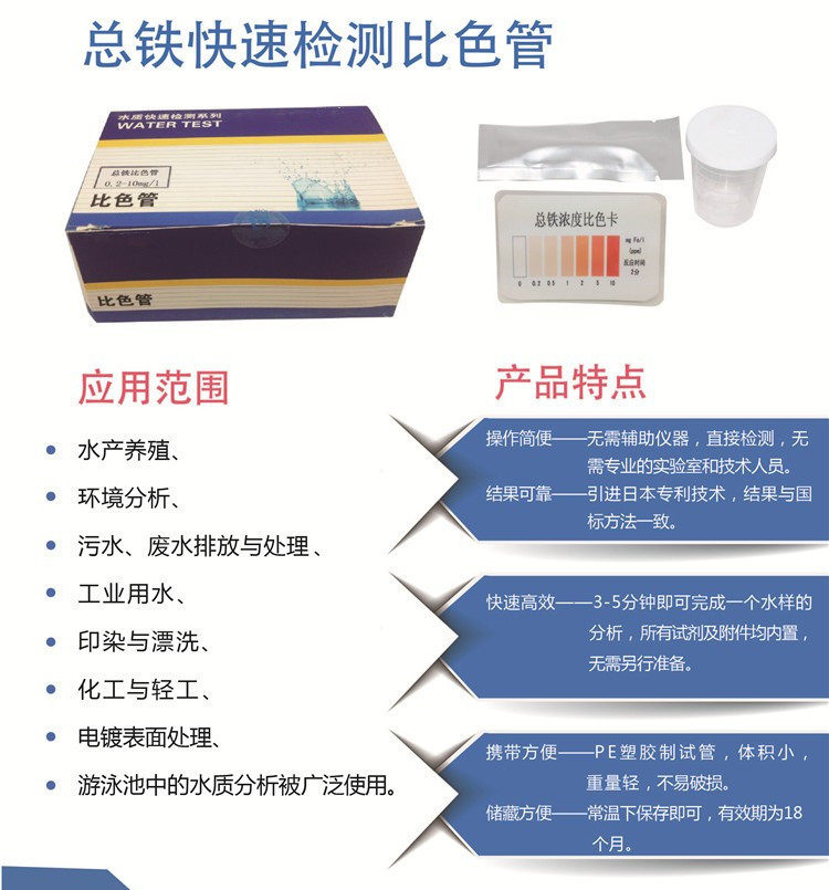 Analysis pack for the rapid determination of iron detection of heavy metal iron in wastewater quality by Lu Hengiron compared to color pipe iron ion