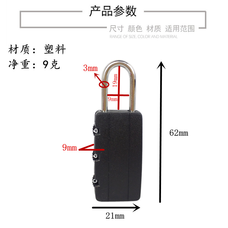 210 plastic mini combination lock small luggage children cartoon schoolbag toy small padlock luggage zipper lock