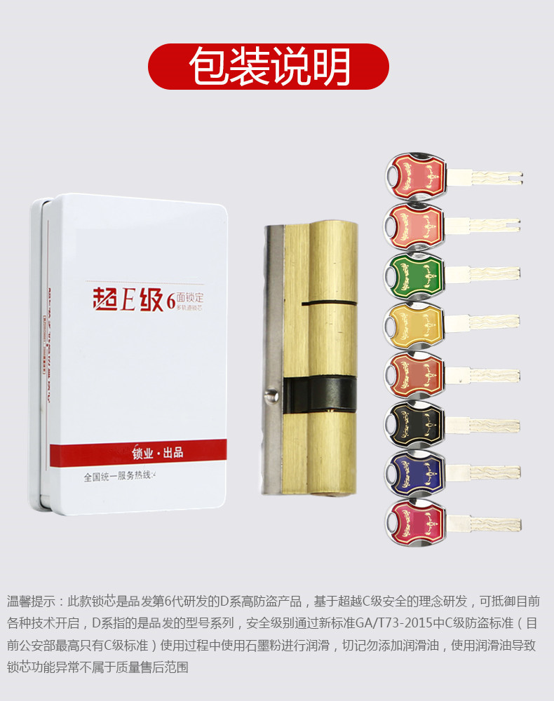 (Six tracks) 36-blade super E series anti-theft door lock core anti-tin anti-riot super C-level lock cylinder universal type