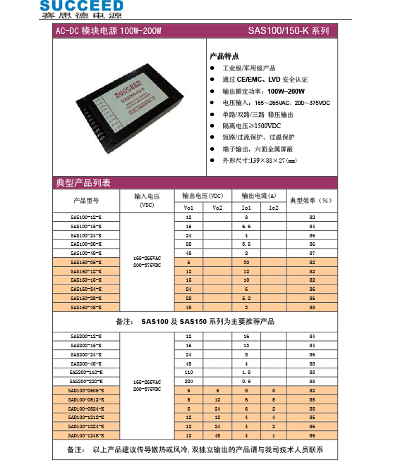 150WSUCCEED Saiside power module AC-DC wide voltage isolation SAS150-12-K terminal block