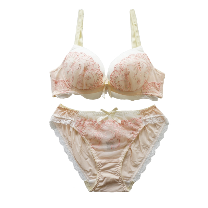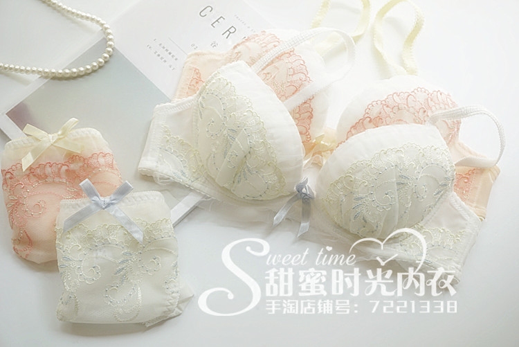 Japanese embroidery big steel ring small low circumference big cup girl student underwear suit cute lingerie