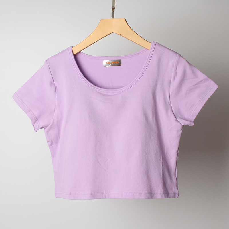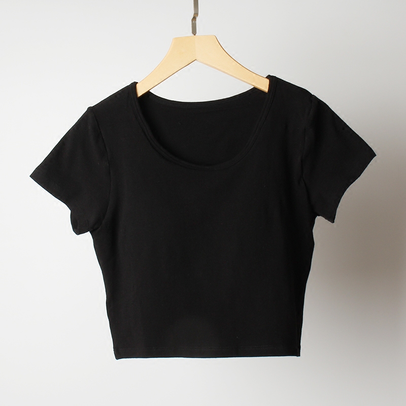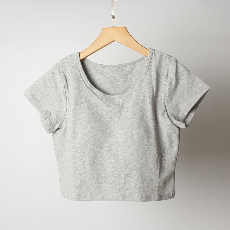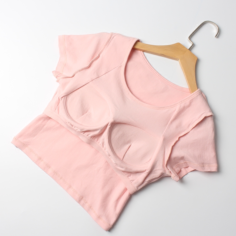 Female summer pure cotton with chest cushion Ruvel half sleeve T-shirt with high waist and half cut short sleeve yoga underwear for undershirt