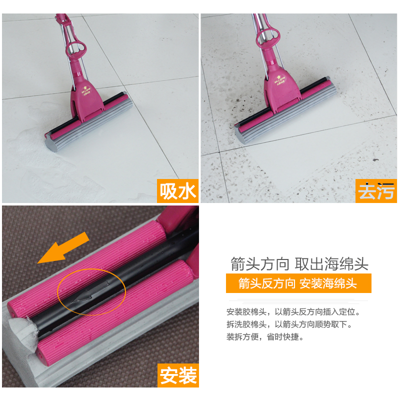 Inexplicable giant easy suction mop head ultra-wide lengthened large glue cotton head sponge head roller type replacement head 3 packaging