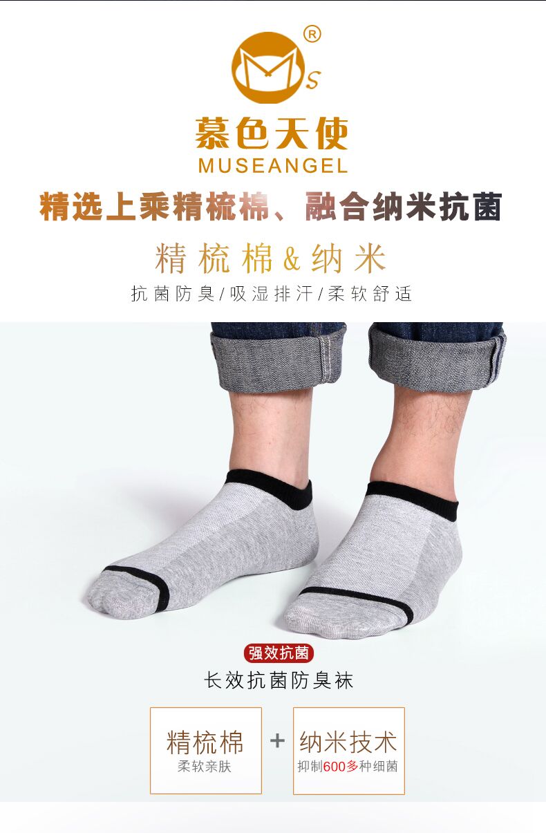 Mousse Angels Antibacterial Nanosilver Deodorant Socks Deodorant Male Socks Deodorant Short Socks Cotton Socks Business Socks for the Four Seasons